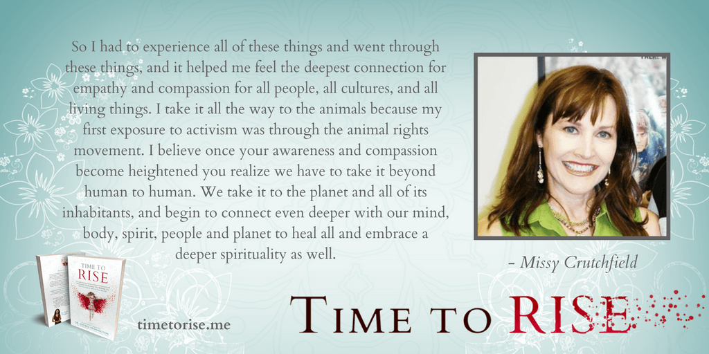 Missy – It absolutely is Time to Rise up! I’m so honored to be a part of this movement. As Gandhi said, “We think the opposite of love is hate, but it isn’t, it is fear.” And I think that society is so driven by being afraid – and so we are in dire need of waking up and seeing what we really have in this world. That is the most important thing.