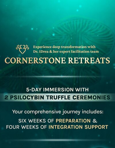 Rejoignez la Dr 1Dréa et son équipe experte en facilitation sensible aux traumas aux Pays-Bas, pour 2 cérémonies aux truffes psilocybine pendant le programme de retraite Cornerstone de 5 jours.